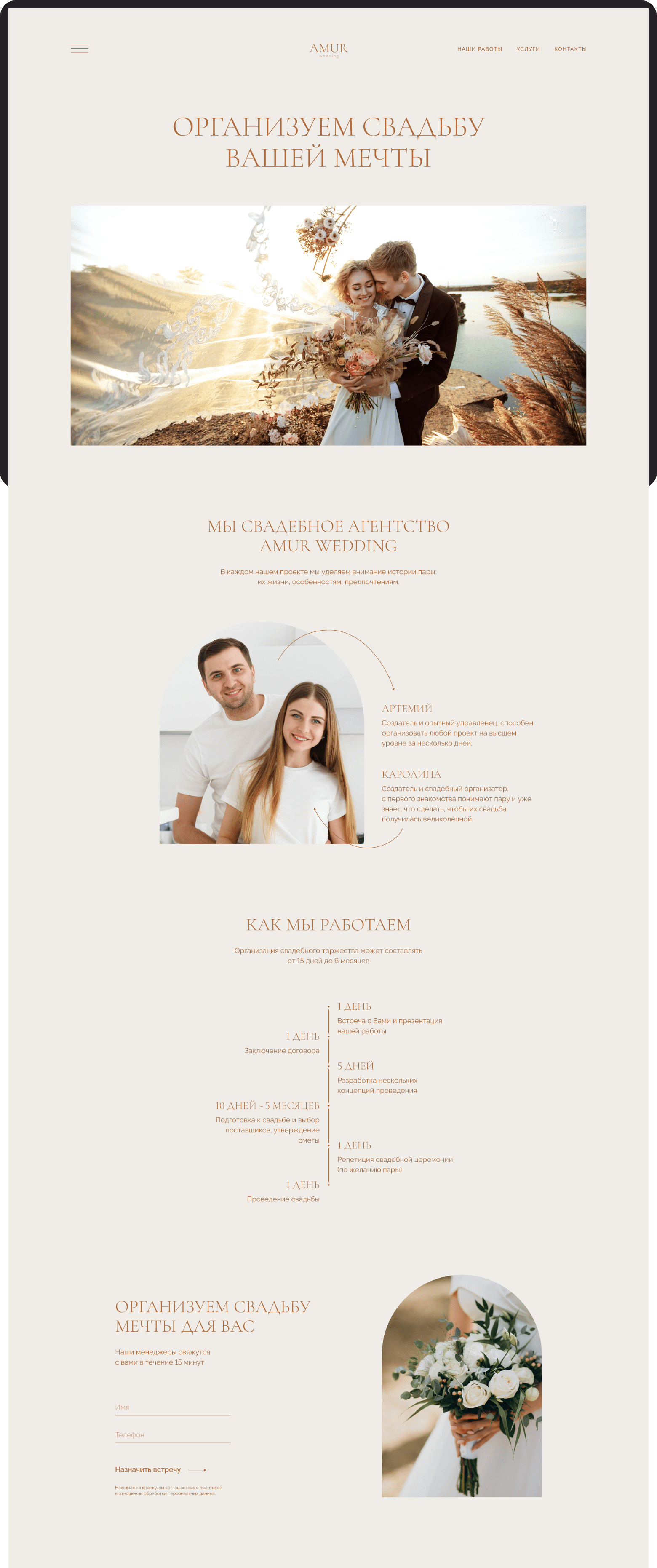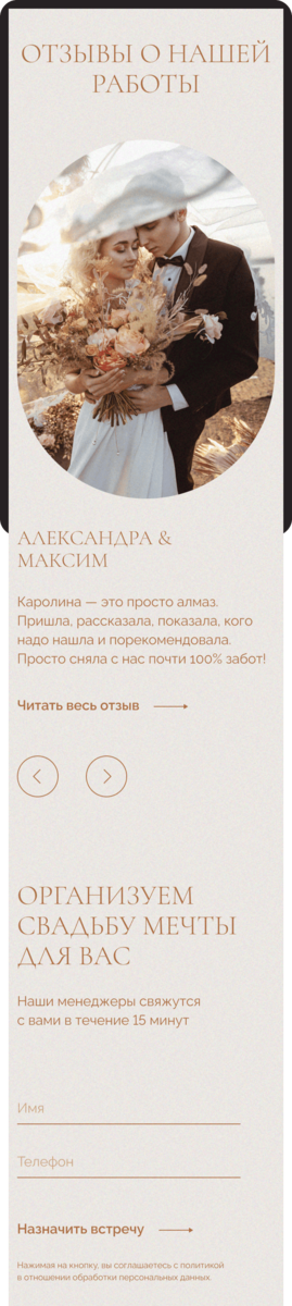 Сделать сайт с нуля с целью привлечения новых клиентов и показать современный подход к организации свадьбы